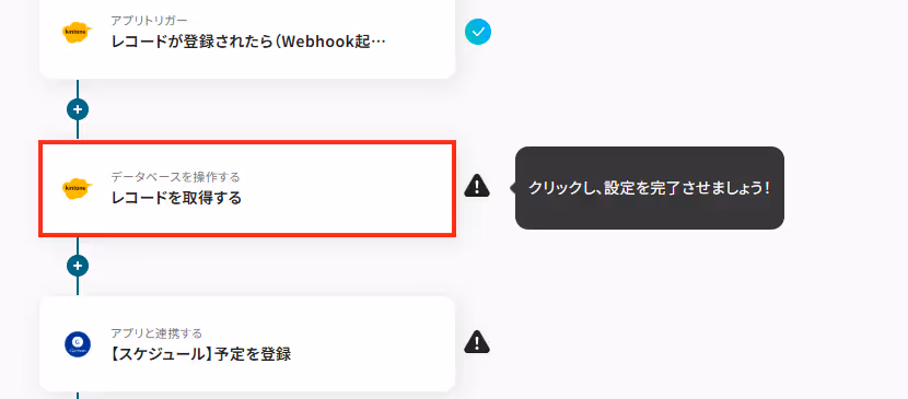 「レコードを取得する」のプルダウンを開いて、順番に選択していきます。