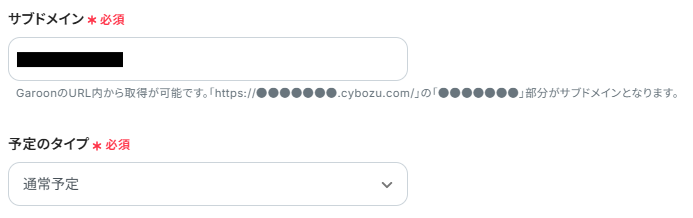 サブドメイン:注釈を確認し、GaroonのURLから入力していきます