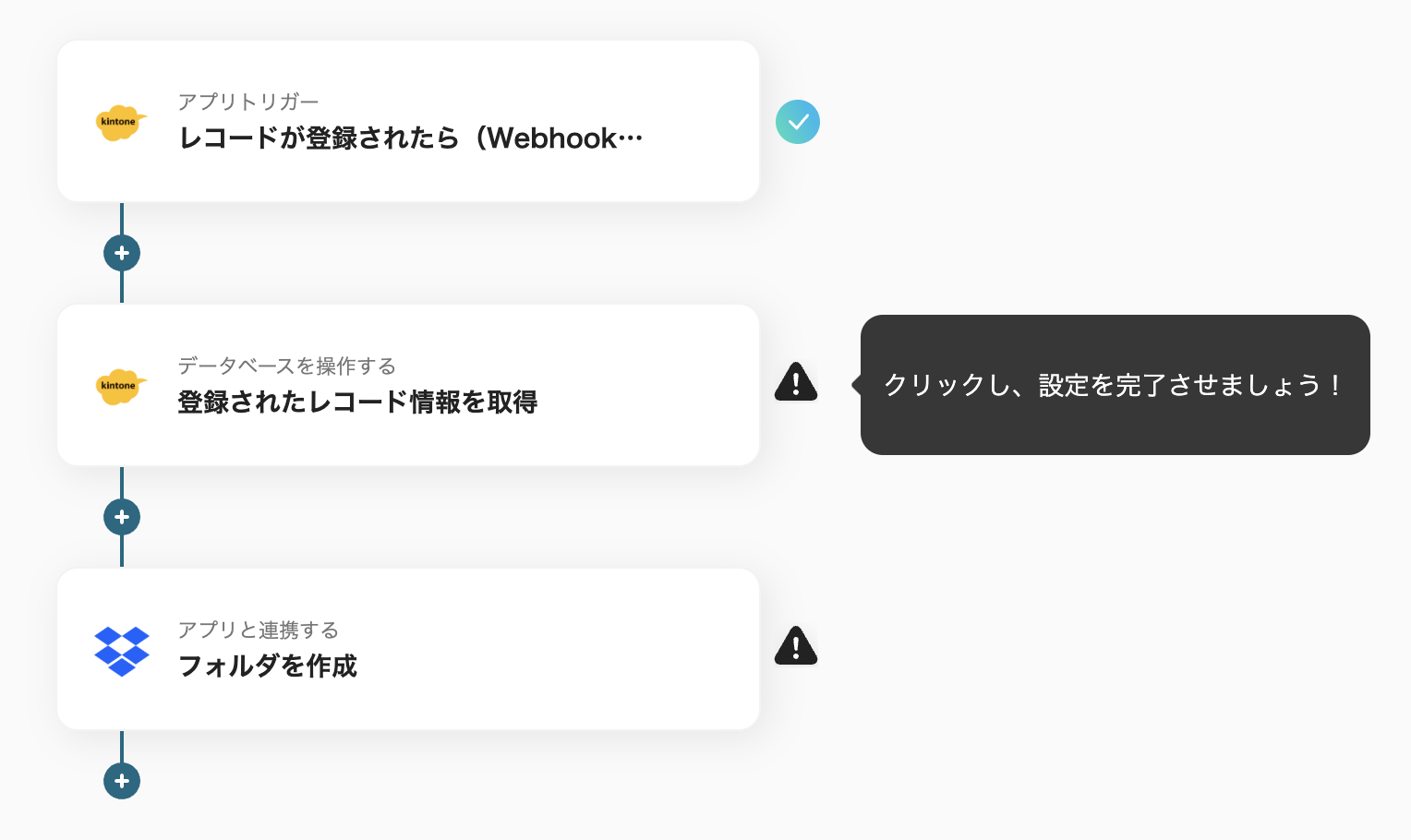 kintoneにレコードを登録後、Dropboxにフォルダが自動作成されるため、手動でフォルダを作成する手間を省くことができます。