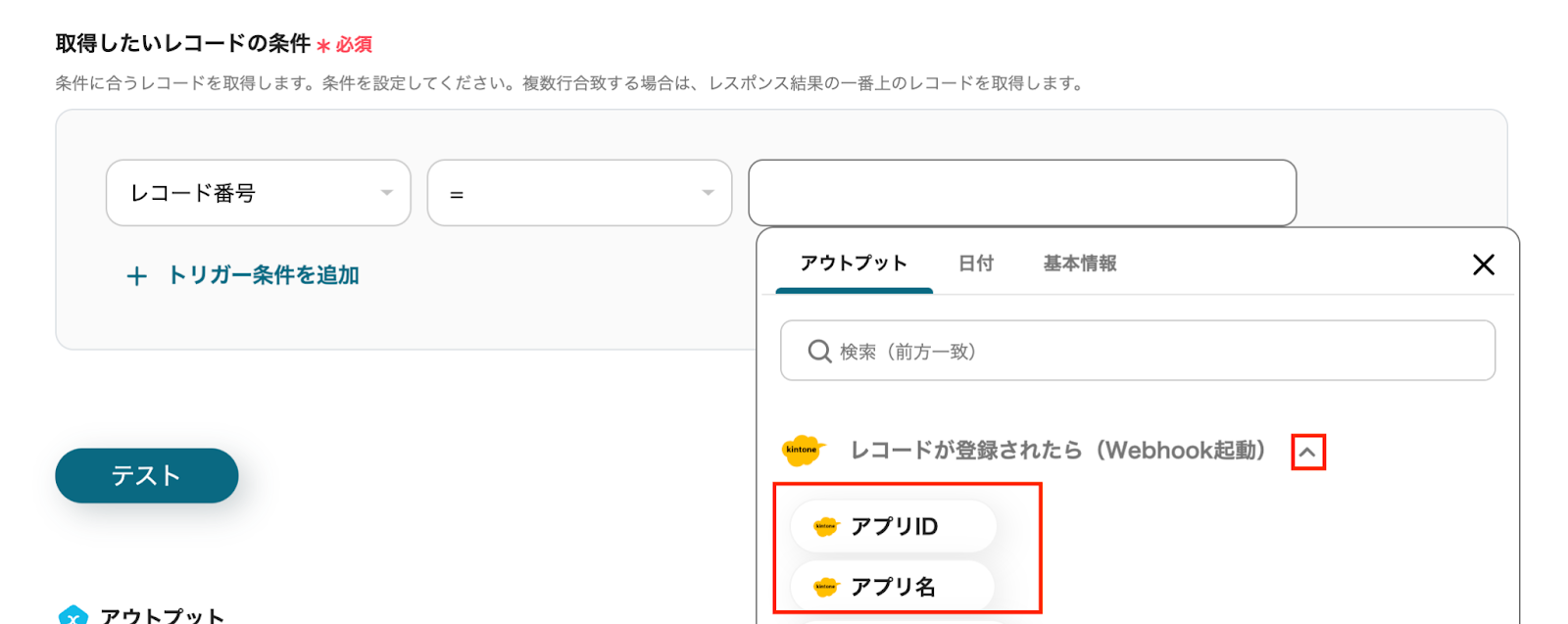 (8)次の画面で「取得したいレコードの条件」を入力します。