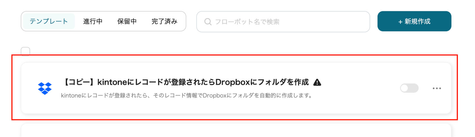 では、「kintoneにレコードが登録されたらDropboxにフォルダを作成」のテンプレートを使ったフローボットを作成していきましょう。