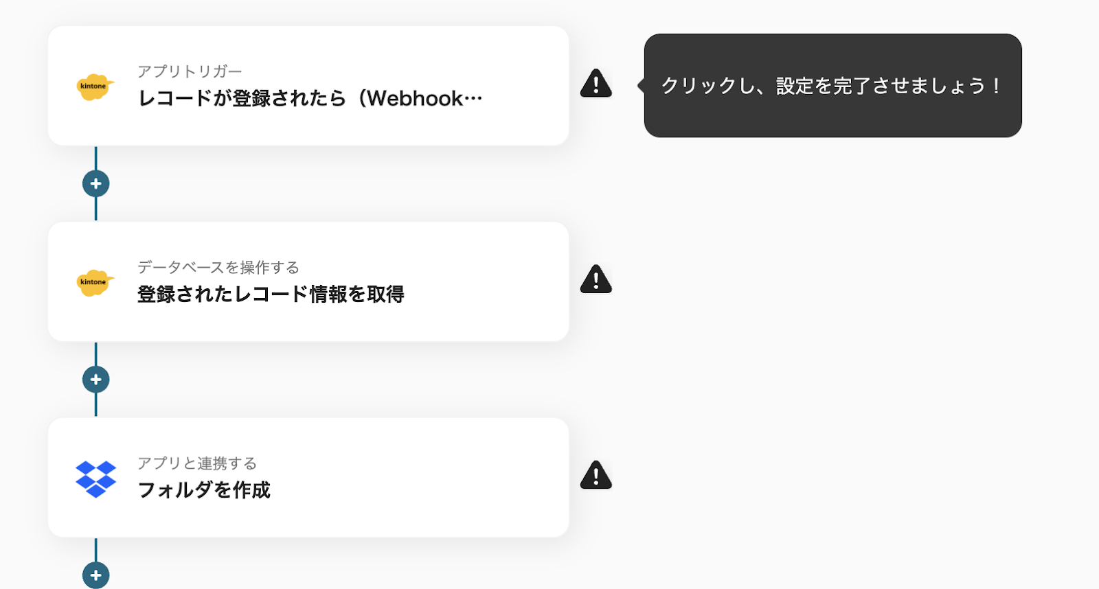 新しいレコードがkintoneに登録された際、フォルダがDropboxに素早く自動生成され、チームメンバーが迅速にフォルダ内容を確認できるようになります。