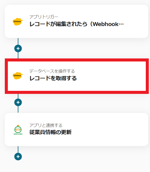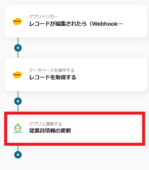 今回は、【kintoneで従業員情報が更新されたらKING OF TIMEの情報も更新する】というフローを作成します。