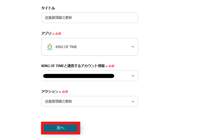 5.KING OF TIMEと連携するアカウント情報を入力します。