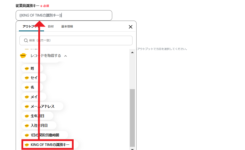 その結果、例えば人事部がkintoneに従業員の昇進情報を登録すると、その内容がKING OF TIMEにも反映されるため、最新の役職情報が勤怠管理にも適用されやすくなります。