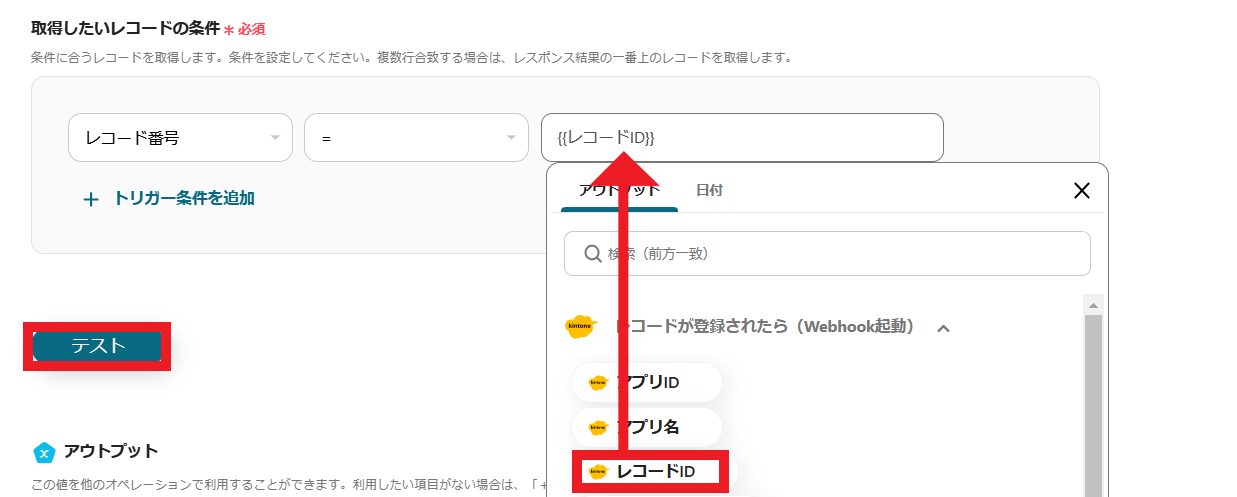 3.取得したいレコードの条件を設定します。