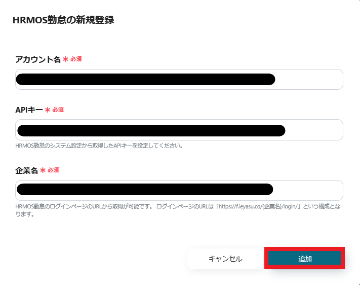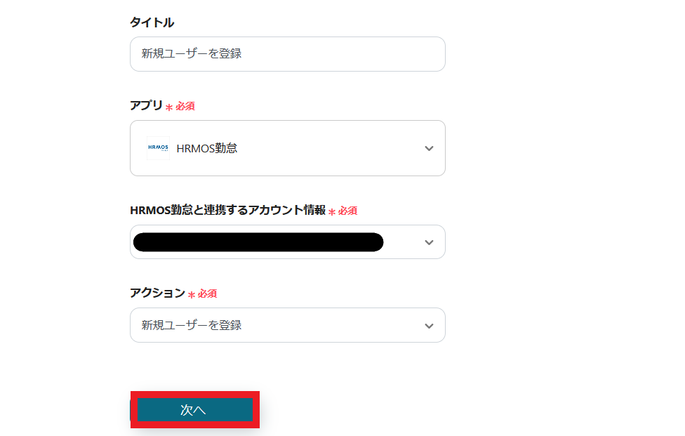 5.HRMOS勤怠と連携するアカウント情報を入力します。