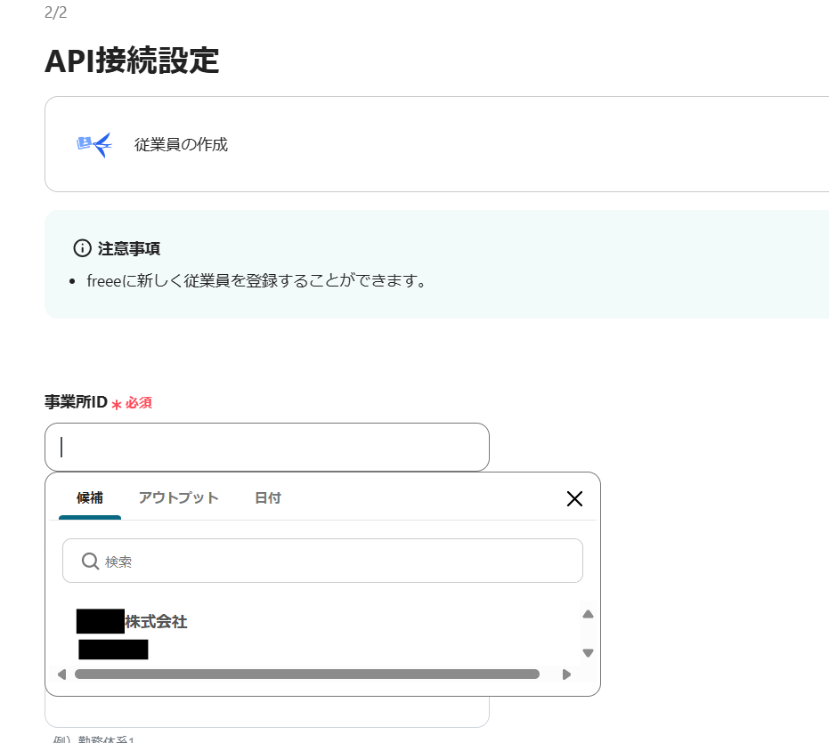 ・今度はfreee人事労務で「従業員の作成」というアクションを設定します。