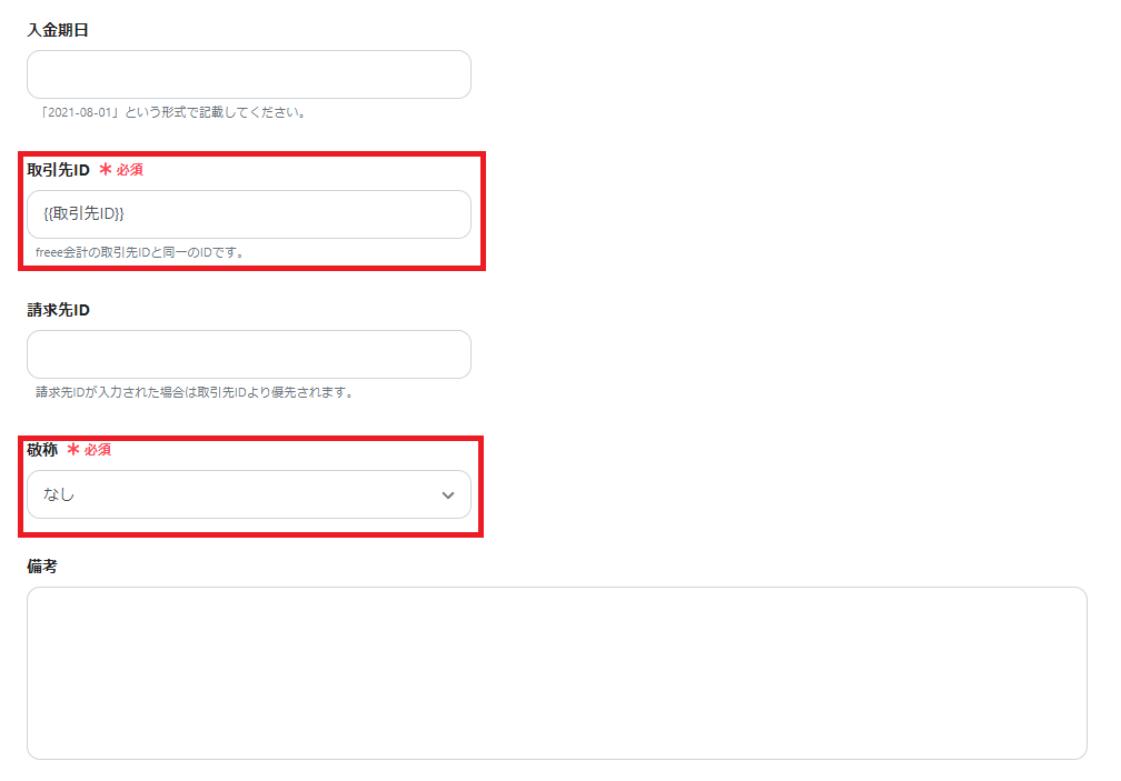 《参考》freee請求書「請求書を作成する」アクション設定時の必須項目