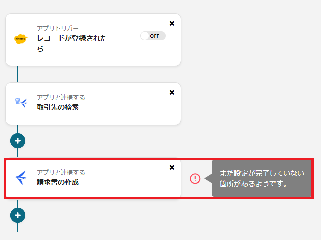 これで「kintoneにレコードが追加されたら、freee請求書で請求書を作成する」 の設定がすべて完了になります。 おつかれさまでした!