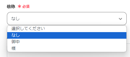 ※以下の項目も必須項目ではありますが、プルダウンメニューからの選択となるため、kintoneアプリに項目がなくても支障はありません。