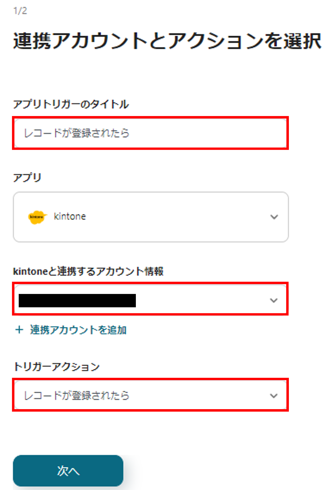 (4)トリガーアクションは「レコードが登録されたら」を選択