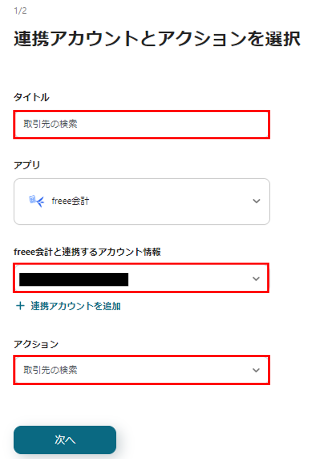 (3)freee会計と連携するアカウント情報が正しいかを確認
