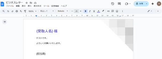 ダウンロードしたデータを開き、Googleドキュメントで作成した雛形書類にkintoneレコードのデータが反映されているか確認してください。