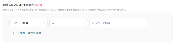 指定したkintoneアプリから条件に合うレコードを取得するための設定を行います。