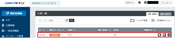 封筒トランザクションIDが取得できていたら、GMOサインで文書が登録されているか確認しましょう。