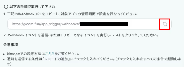 下記画像の赤枠をクリックしWebhookURLをコピーしてください。