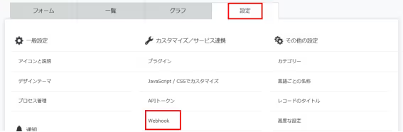 設定タブを押し、「Webhook」を選択してください。