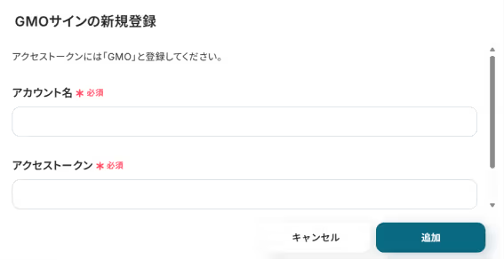 「アクセストークン」には、【GMO】と入力し、「追加」をクリックください。