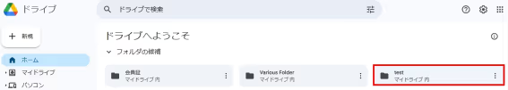 先ほど作成したGoogleドライブのフォルダを選択してください。