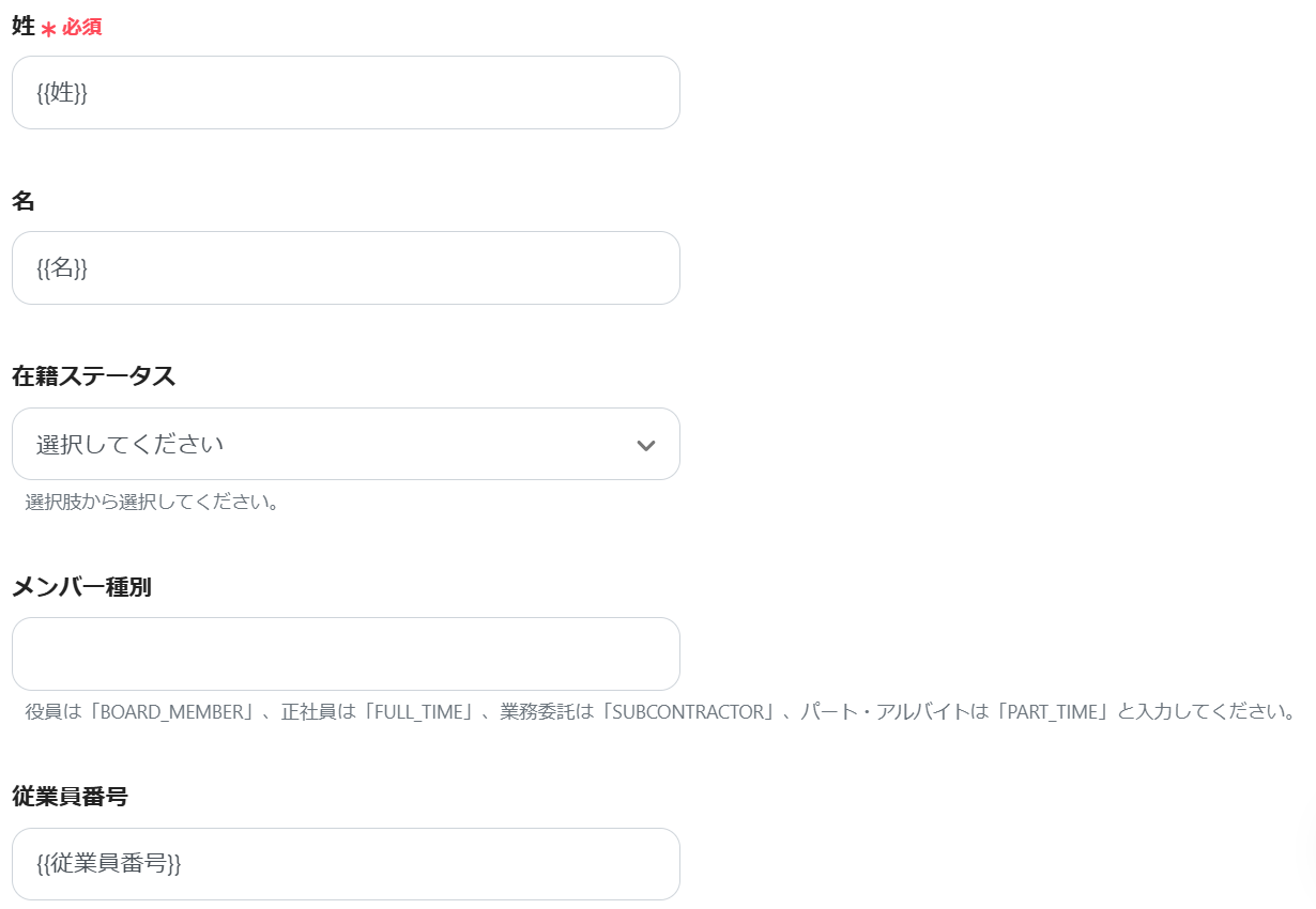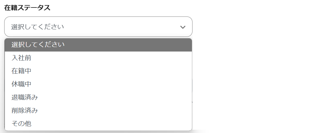 在籍ステータスを設定しないとエラーになるため、選択肢から設定します。