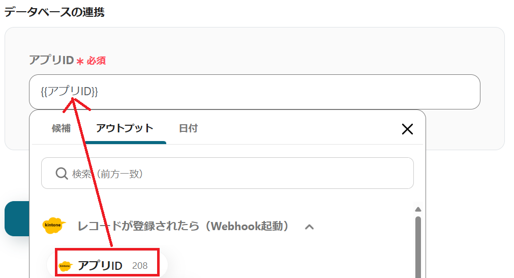 データベースの連携をするので、以下のようにアウトプットから選択します。