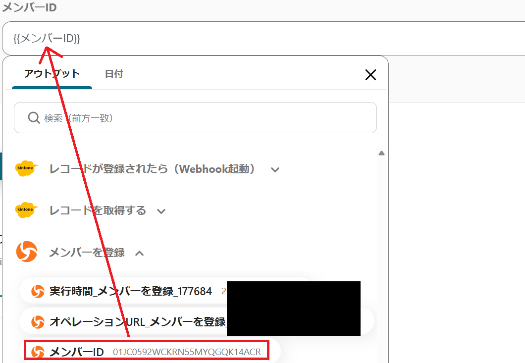 今回更新したいのはジョーシスのメンバーIDなので、アウトプットから設定します。