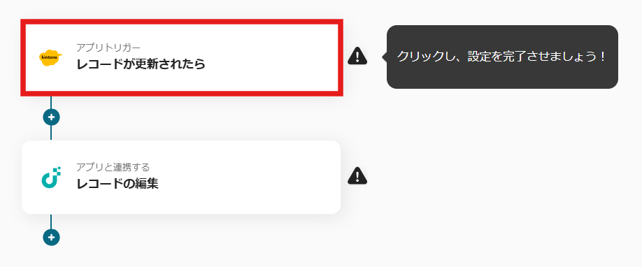 トリガーは「レコードが編集されたら(Webhook起動)」を選択します。