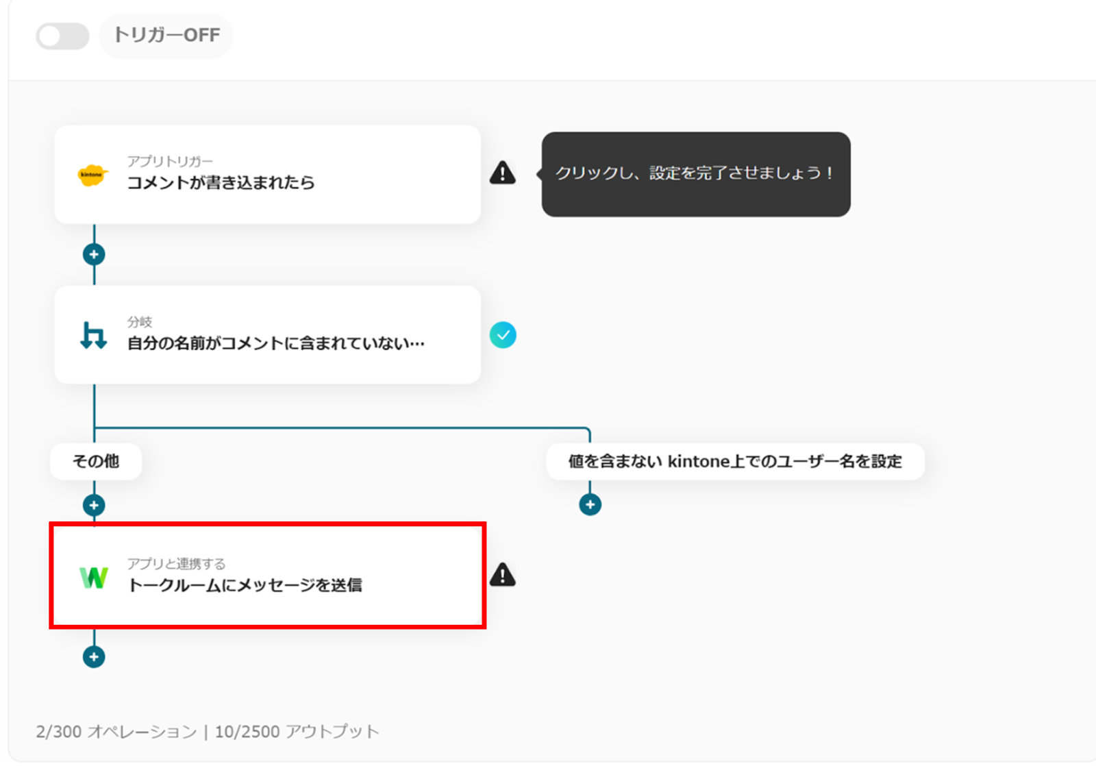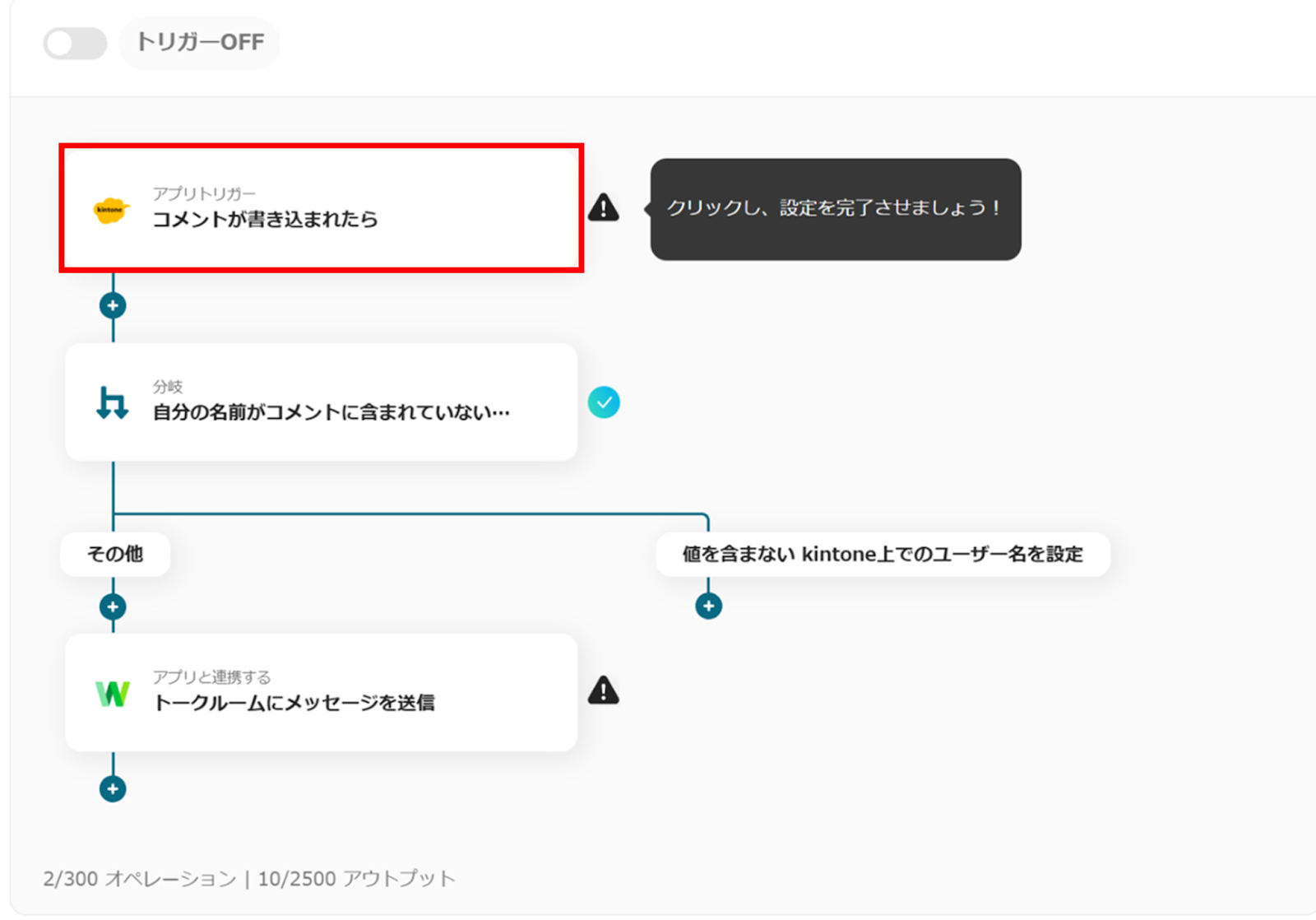 これで、「kintoneのコメントで自分がメンションされたらLINE WORKSに通知」フローボットの完成です。