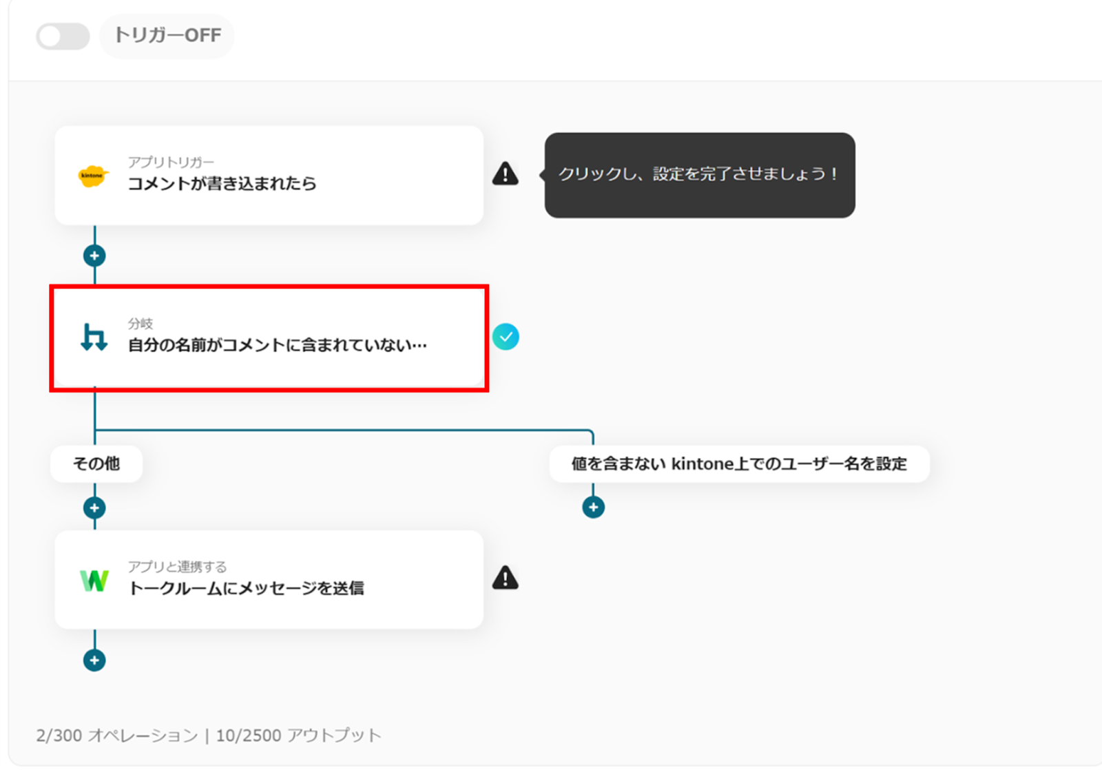 「自分の名前がコメントに含まれていない場合は分岐」をクリックします。