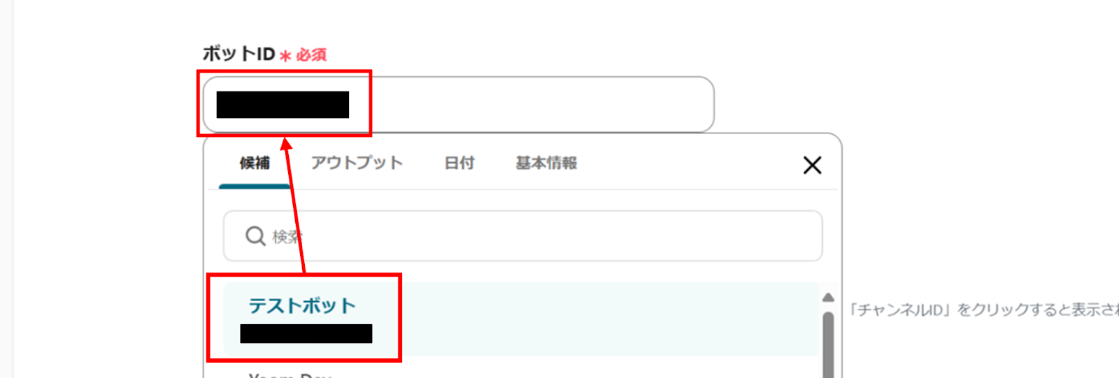 (3)「API選択」画面から、ボットIDを候補から選択します。