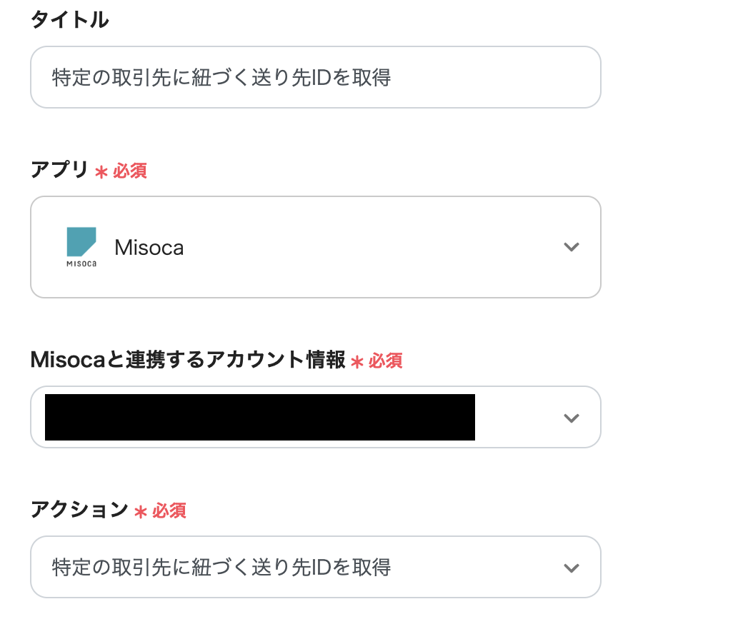 3つ目のアクション、「特定の取引先に紐づく送り先IDを取得」をクリックします。