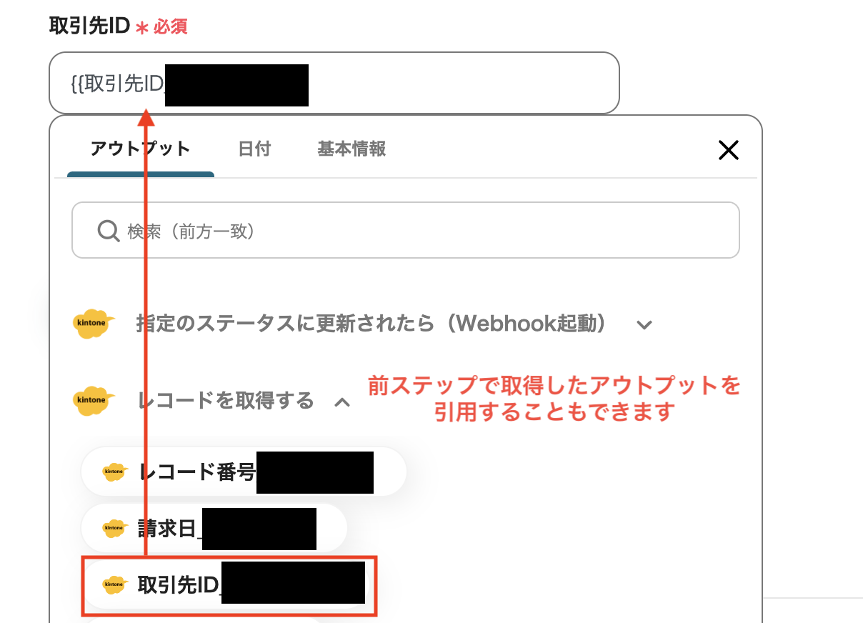 前ステップで取得した情報を引用することもできます。