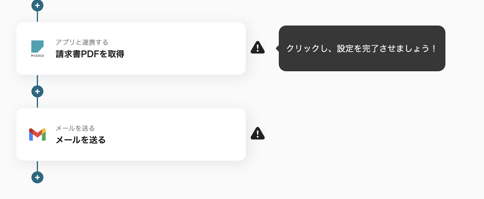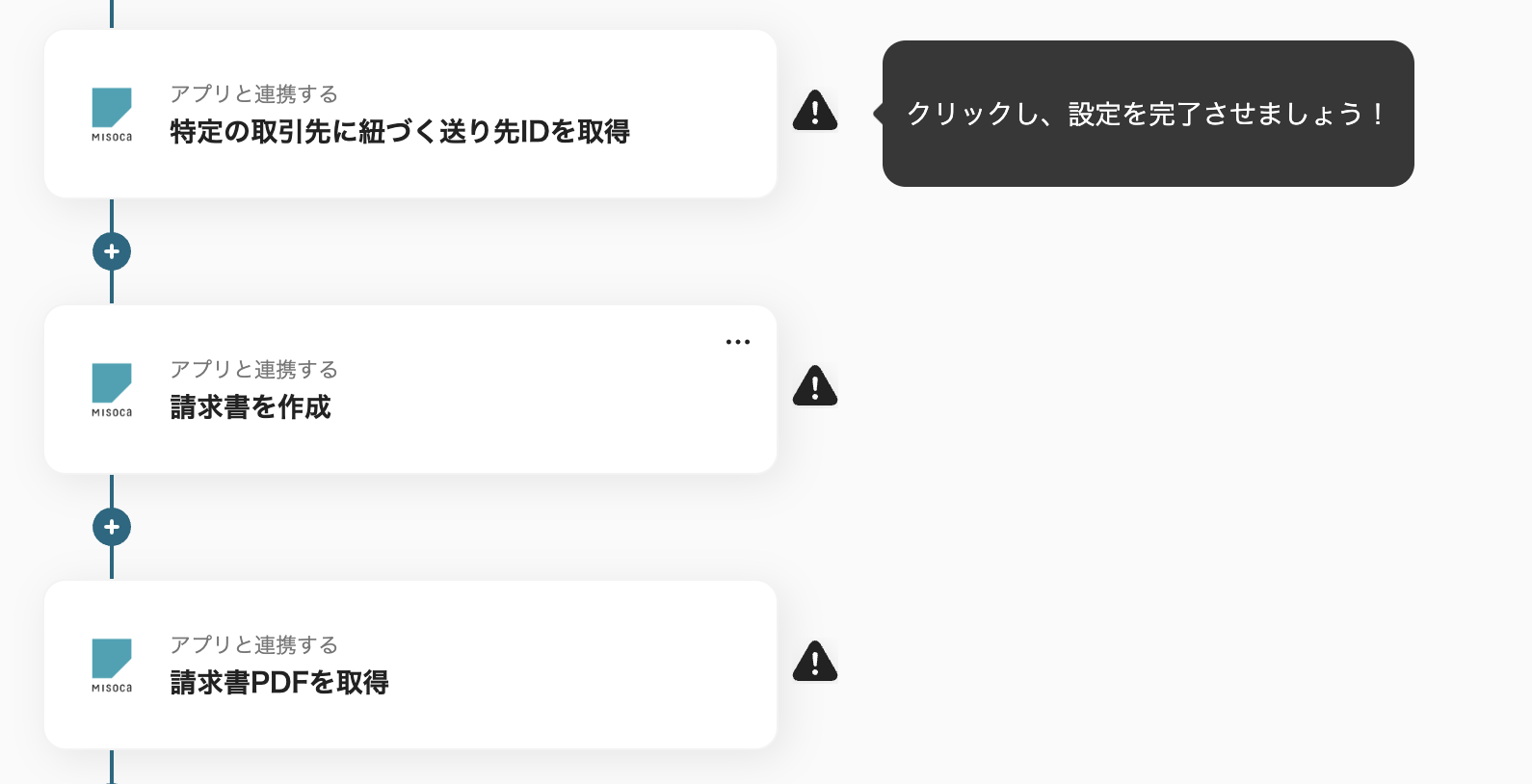 従来、ステータス変更を手動で確認し、その後Misocaで請求書を作成してGmailで送信するには、複数のステップが必要でした。