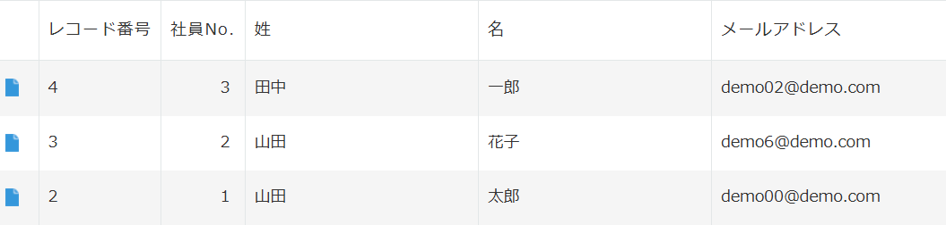 kintoneの画面に移動し、テスト用に従業員情報を登録しましょう。