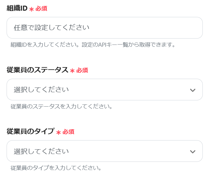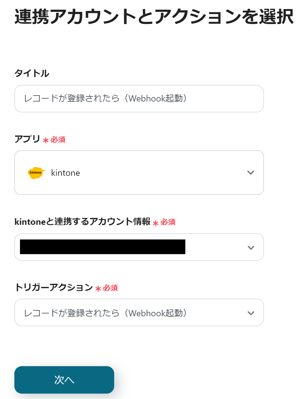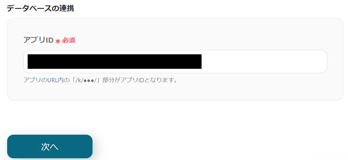 「レコードが登録されたら(Webhook起動)」のアウトプットを活用して、以下のように設定してください。