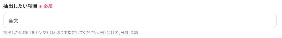 - 抽出したい項目:今回はファイルの全文を抽出したいため、下記のように入力しました。