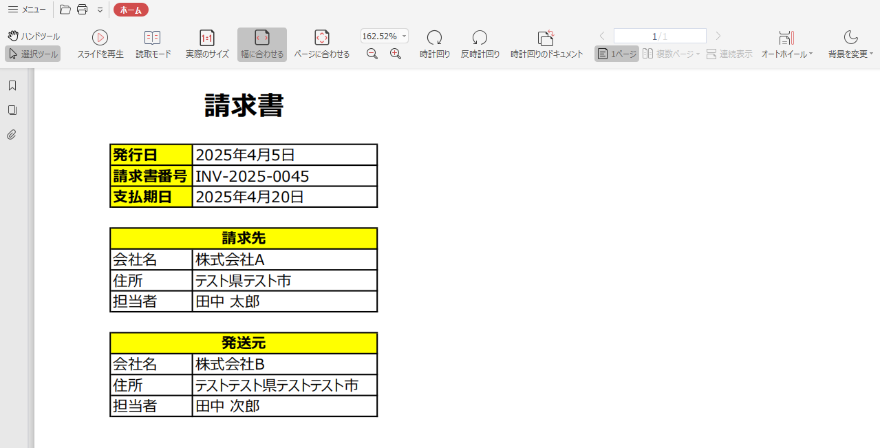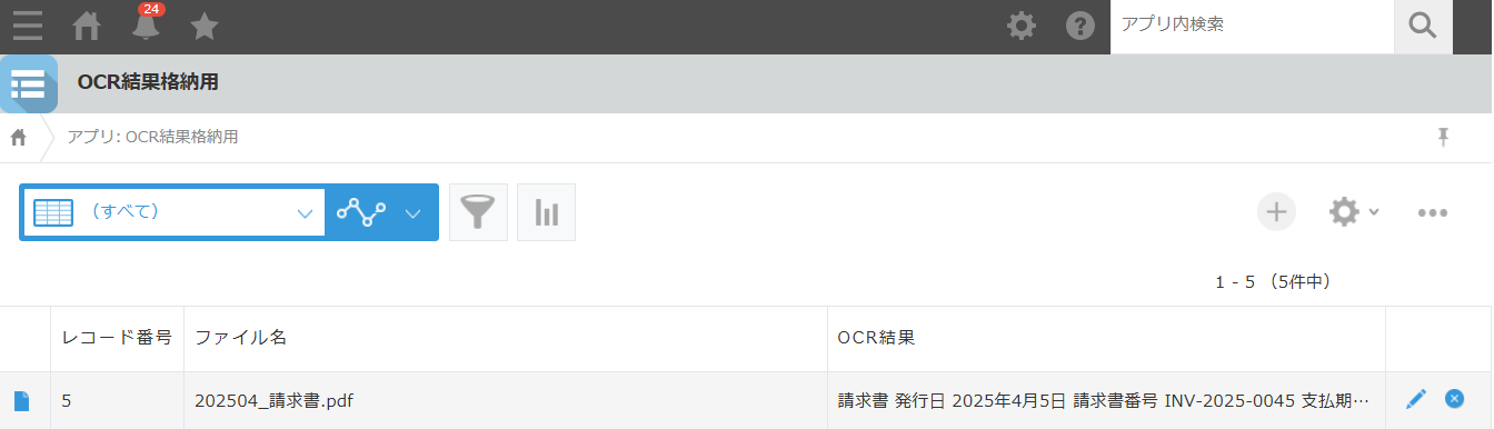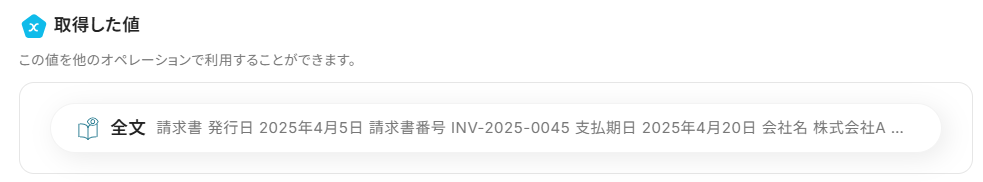 テストが成功すると、下記のようにPDFや画像ファイルデータから抽出した文字情報が反映されるはずです。