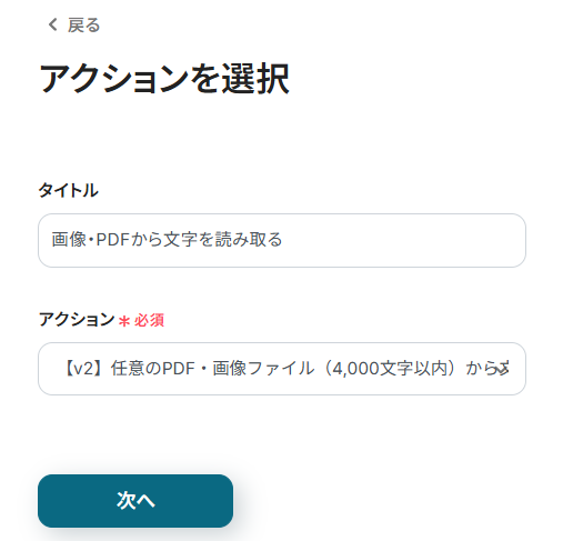 ここでは、指定したPDFや画像ファイルからAIを用いて文字情報を読み取る設定をします。