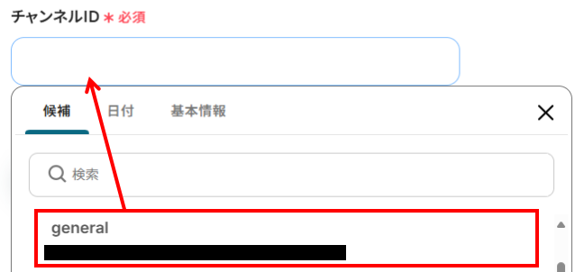 こちらの入力項目も、入力欄をクリックするとアウトプットが表示されるので、下記のように選択しましょう。