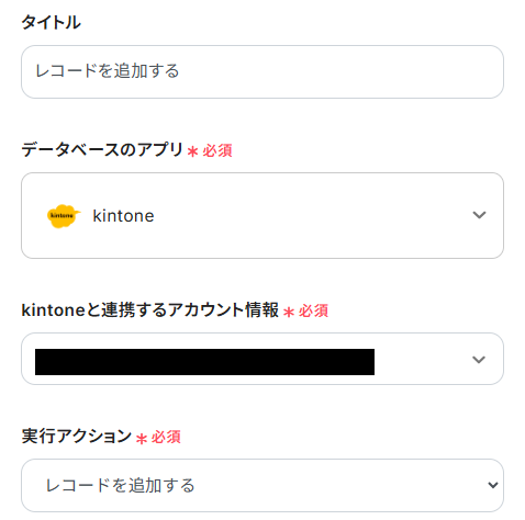 ここでは、レコードを追加したいkintoneアプリを設定します。