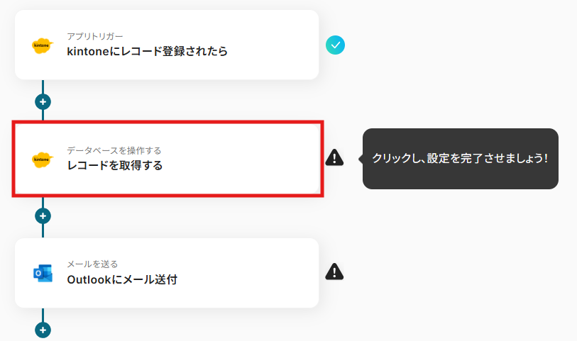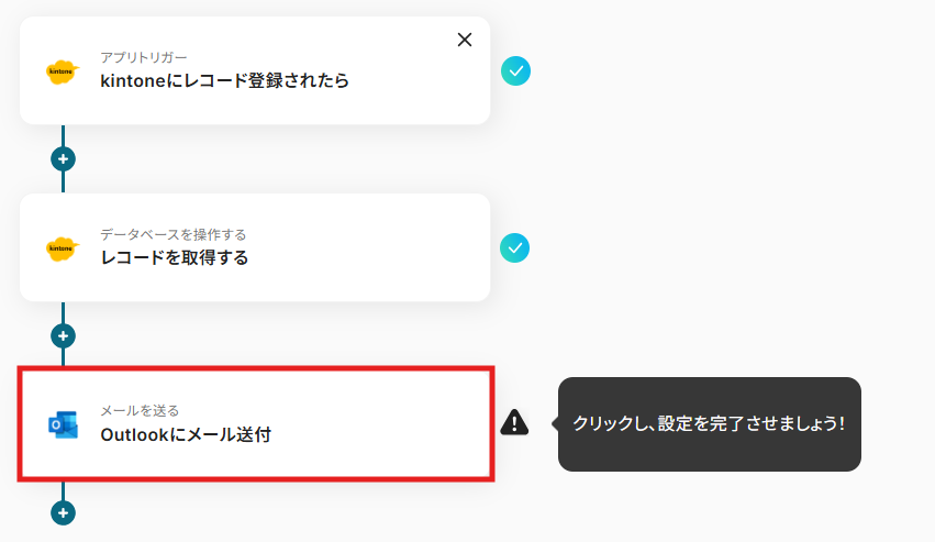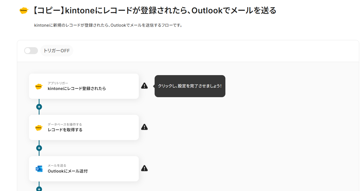 これで【kintoneにレコードが登録されたら、Outlookでメールを送る】というフローが完成です。