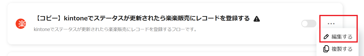kintoneでステータスが更新されたら楽楽販売にレコードを登録するフローです。