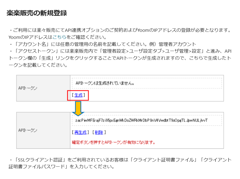 ※楽楽販売にてAPI連携オプションのご契約およびYoomのIPアドレスの登録が必要となります。YoomのIPアドレスはこちらをご確認ください。