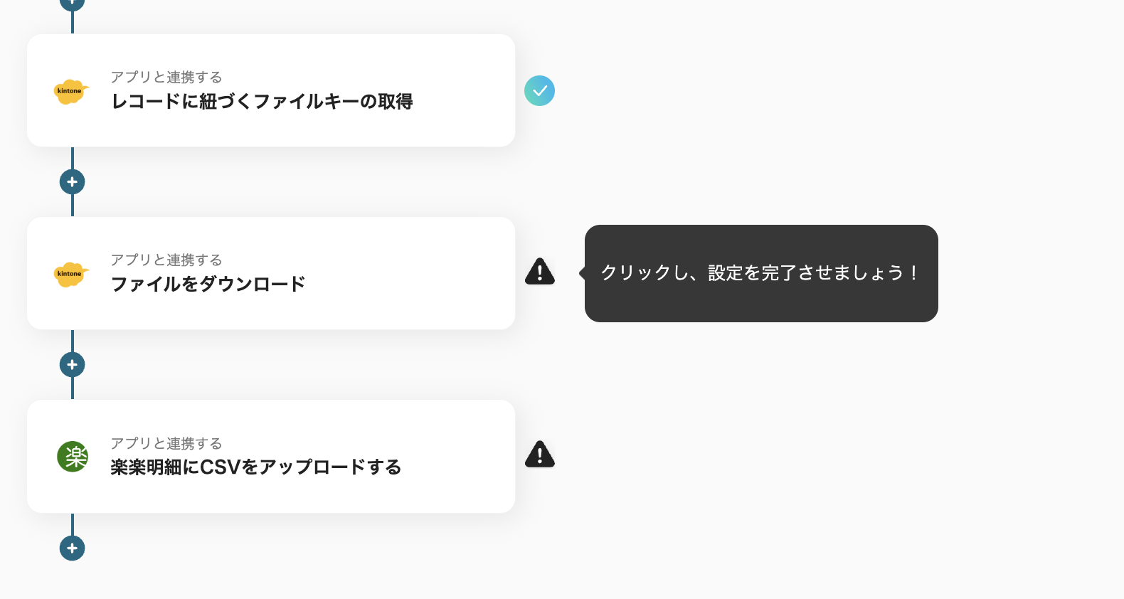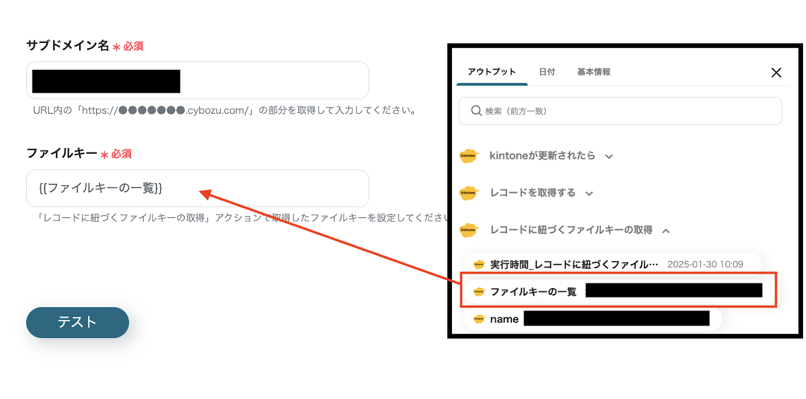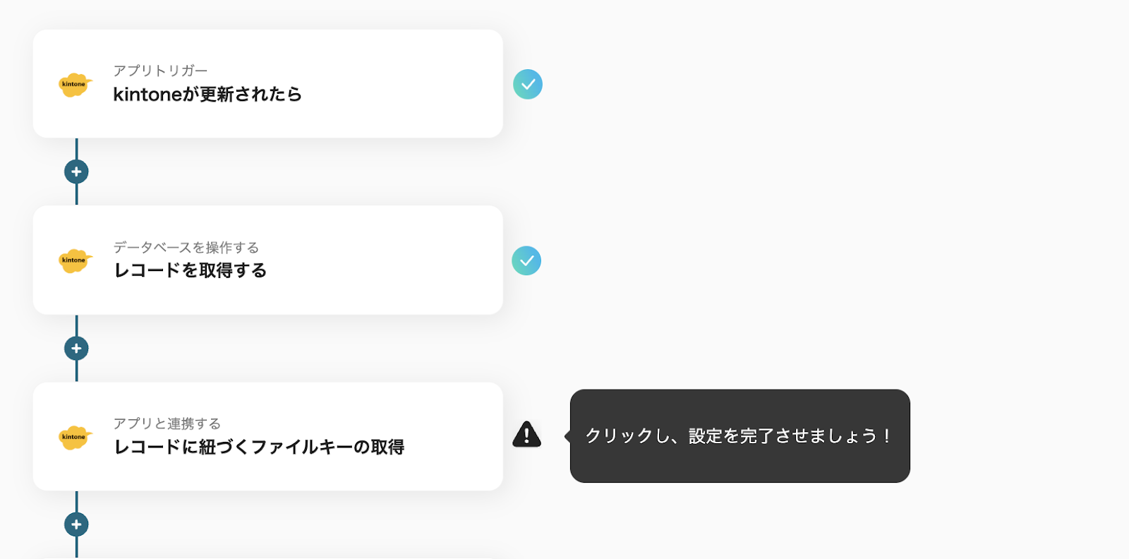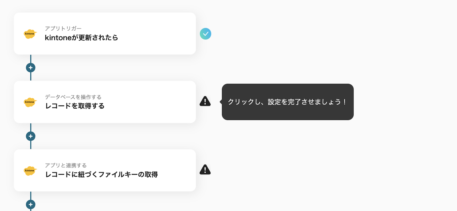(1)続いて、3つ目のステップ「レコードに紐づくファイルキーの取得」をクリックして設定を進めていきます。