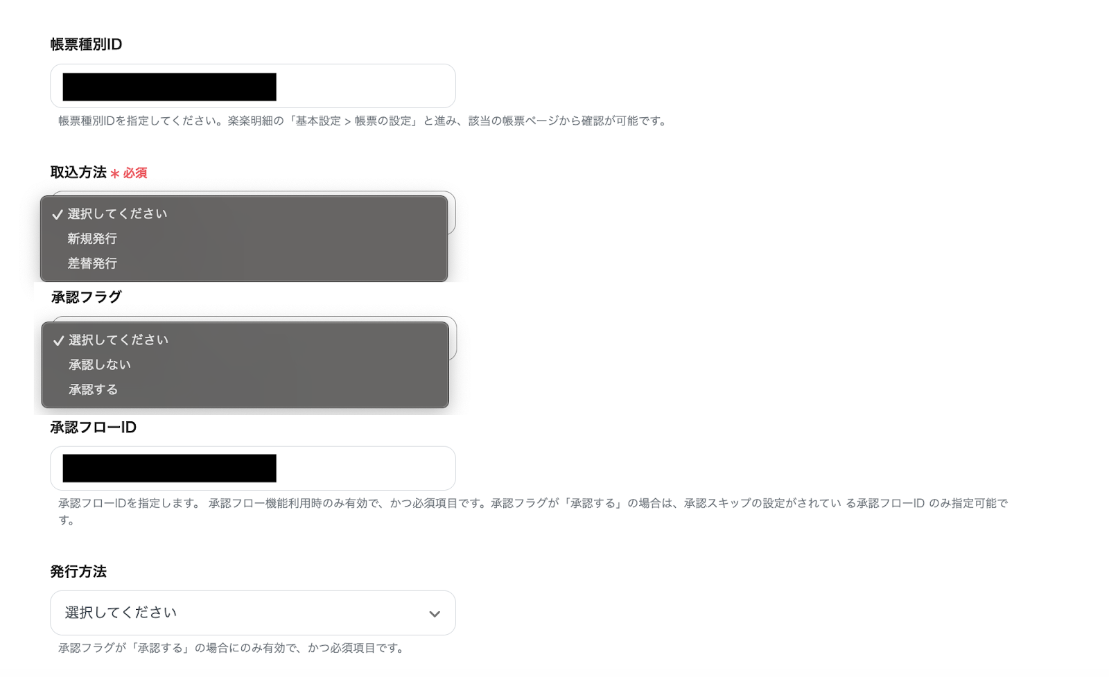 (3)次の画面で、「帳票種別ID」を始めとする項目に情報を入力していきます。