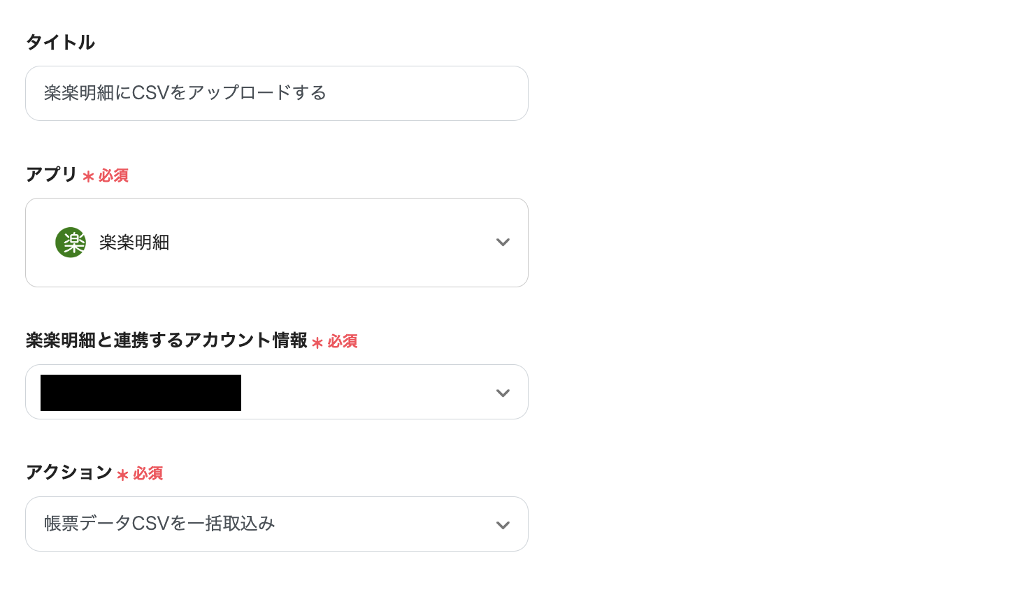 その後、楽楽明細の提供するAPIを用いて、CSVファイルを楽楽明細にもアップロードすることで実現できます。