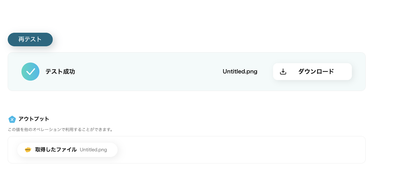 アウトプット情報は、「この値を他のオペレーションで利用することができます。」という注釈の通り、この後のステップで引用・活用できます。