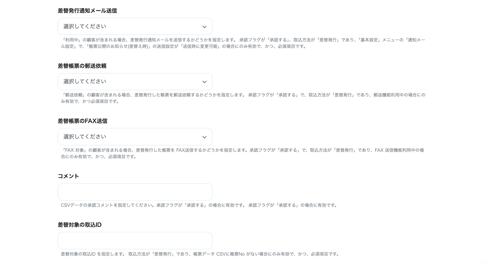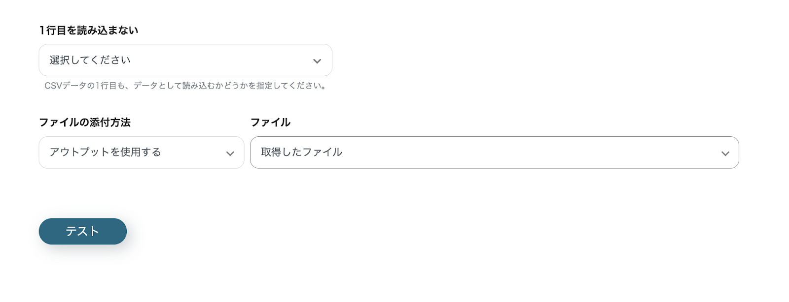 「取込方法」など、プルダウンから情報を選択できる項目もあります。