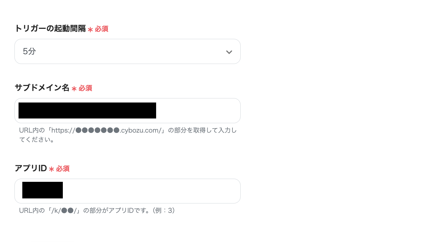 (1)まず、kintoneのアプリトリガーを設定します。